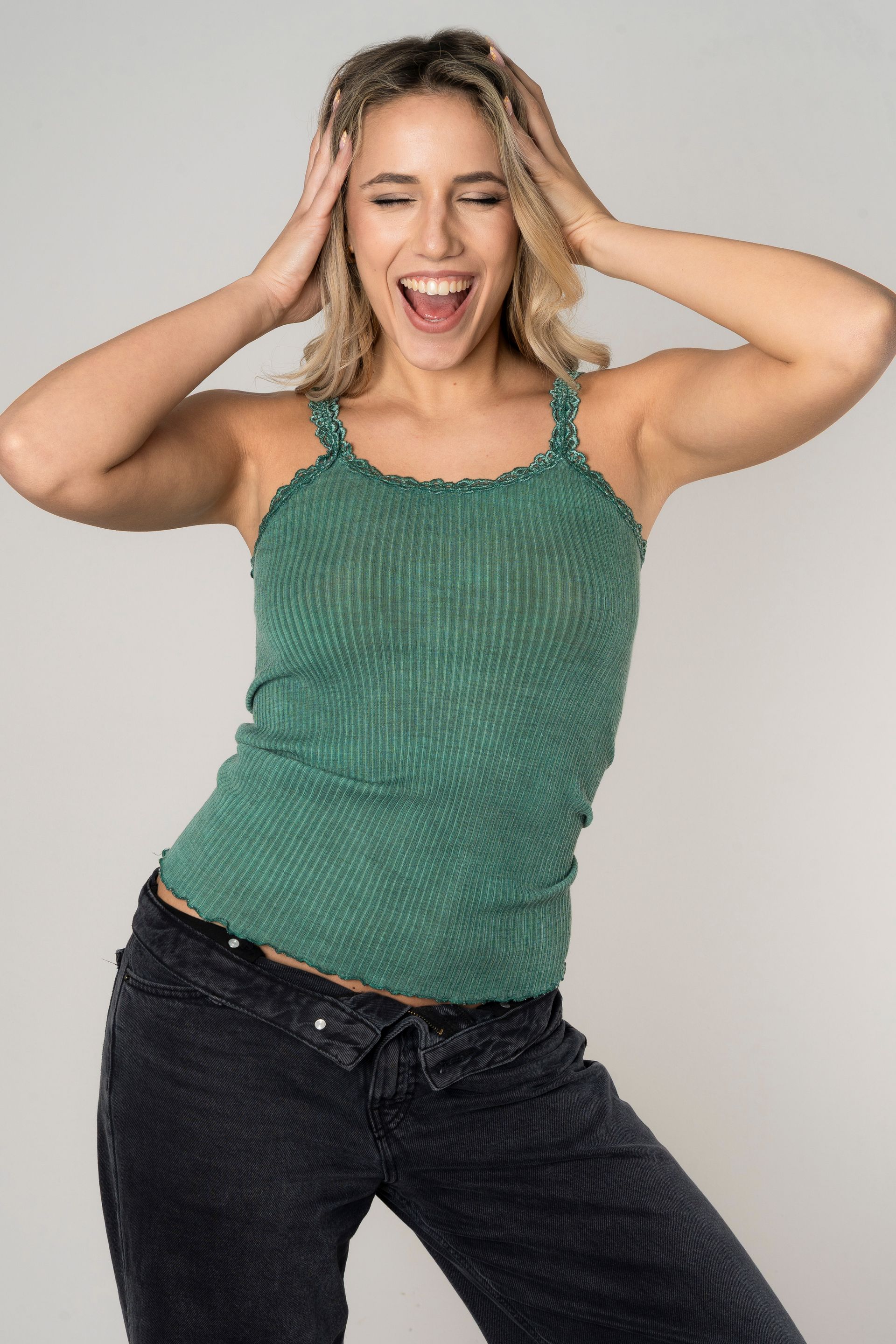 I capi di questa collezione sono prodotti utilizzando pregiato filato “Filo di Scozia”, un materiale conosciuto per la sua resistenza e morbidezza, e tinti con coloranti naturali, quali l’arancia, l’alga spirulina, la clorofilla, cacao e carbone. Questi ingredienti non solo conferiscono un'incredibile varietà di colori ai capi, ma garantiscono anche un approccio ecologico e sostenibile alla moda. Tutto ciò è studiato per ottenere un capo che unisce qualità e sostenibilità, donando cura e comfort alla tua pelle e rispettando al contempo il delicato equilibrio dell’ambiente che ci circonda. Ogni articolo non è solo un prodotto, ma una scelta consapevole verso un futuro più responsabile.